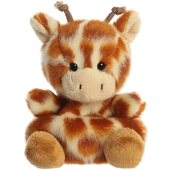 What if things like love and joy could fit in the palm of your hand? Well, now they can with Safara the Stuffed Giraffe Palm Pals Plush by Aurora. Measuring approximately five inches, don't be dismayed by the size of this stuffed giraffe. After all, big things come in small packages. Palm Pals are a plush line by Aurora. It's right in the name, because this small plush giraffe fits nicely in the palm of your hand. Understuffed for mobility and bean weighted to give it a good center of gravity, you're going to fall in love with this small bean bag giraffe stuffed animal. And how could you not? Soft, durable plush on the outside. Top notch stuffing on the inside. There's no denying Safara the Stuffed Giraffe Palm Pals Plush by Aurora has quality you can both see and feel. It will be hard to resist the urge not to throw your stuffed giraffe. So, why resist! Give it a toss. Who needs hot potato when you can throw around a small plush giraffe instead. But just when you thought it couldn't get any better, it so totally does! Its affordable price makes it an ideal candidate for party favors and bulk purchases. If you need just one or you need a hundred, Stuffed Safari has you covered. By the way, this small bean bag giraffe stuffed animal looks fabulous wearing one of our custom printed bandanas. Just find the Choose Your Options Box, select a bandana, pick a font color, a font style, and enter a personal message. Just like that, you've added some personal flair you won't find anywhere else. So, don't delay. Act now, and order one of your very own today.